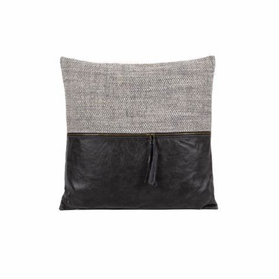 Leather and Linen Lumbar Pillow : Natural/Tan