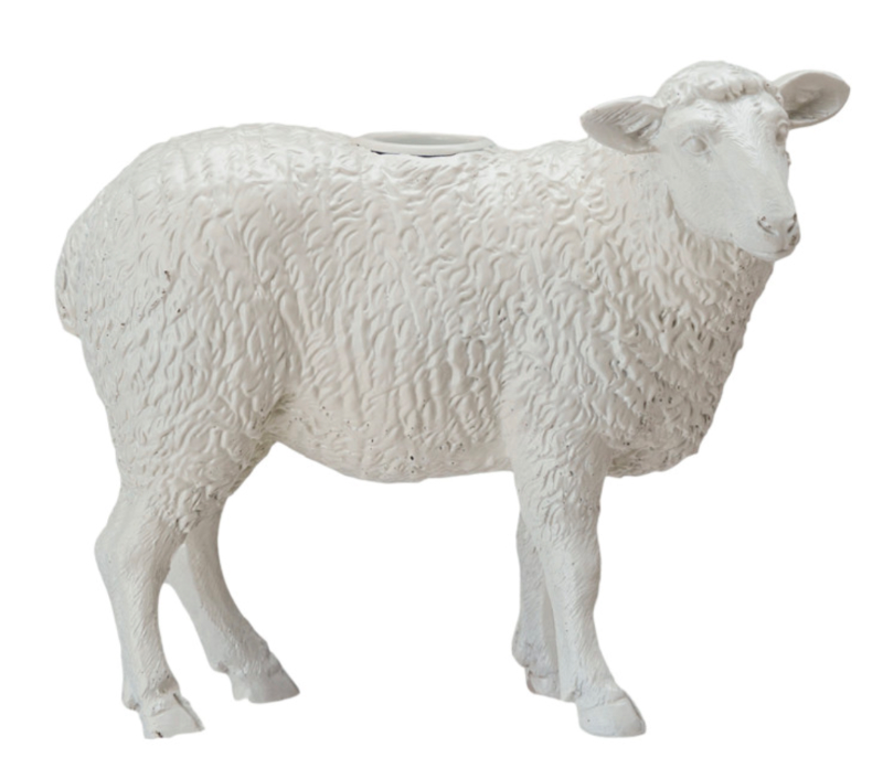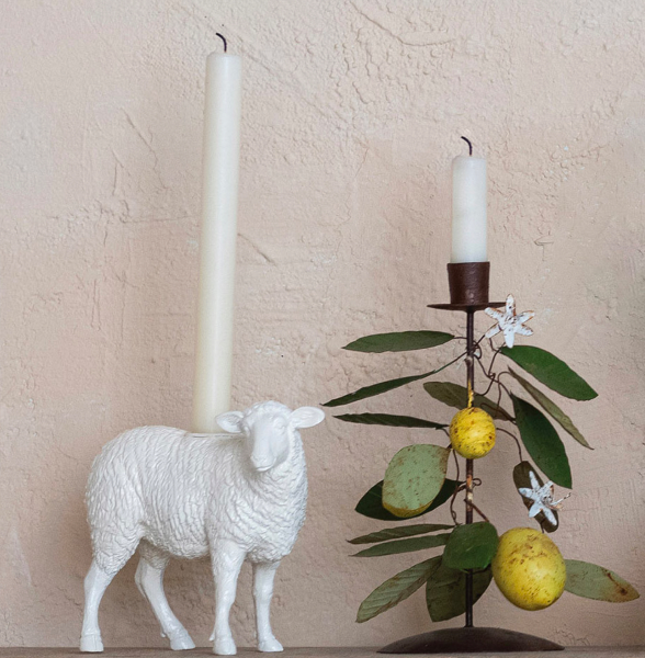 6-3/4"L x 3-1/4"W x 5-1/2"H Resin Sheep Taper Holder, Antique White
