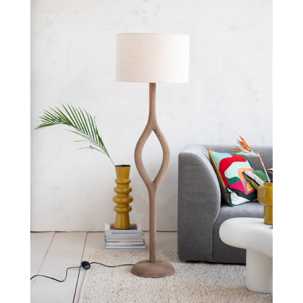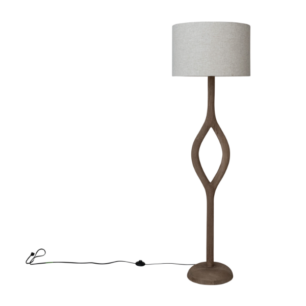 (DENTED SHADE) 20" Round x 65"H Mango Wood Floor Lamp w/ Open Diamond Shaped Base, Cotton Shade & Inline Switch, Stained Sand Finish