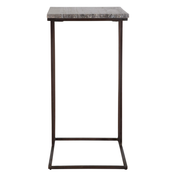 Designed to enhance your living space the Theo accent table is both highly functional and striking. The titanium travertine top perfectly blends with the dark bronze base in this versatile pull up table. Dimensions: 16 W X 23 H X 12 D (in)