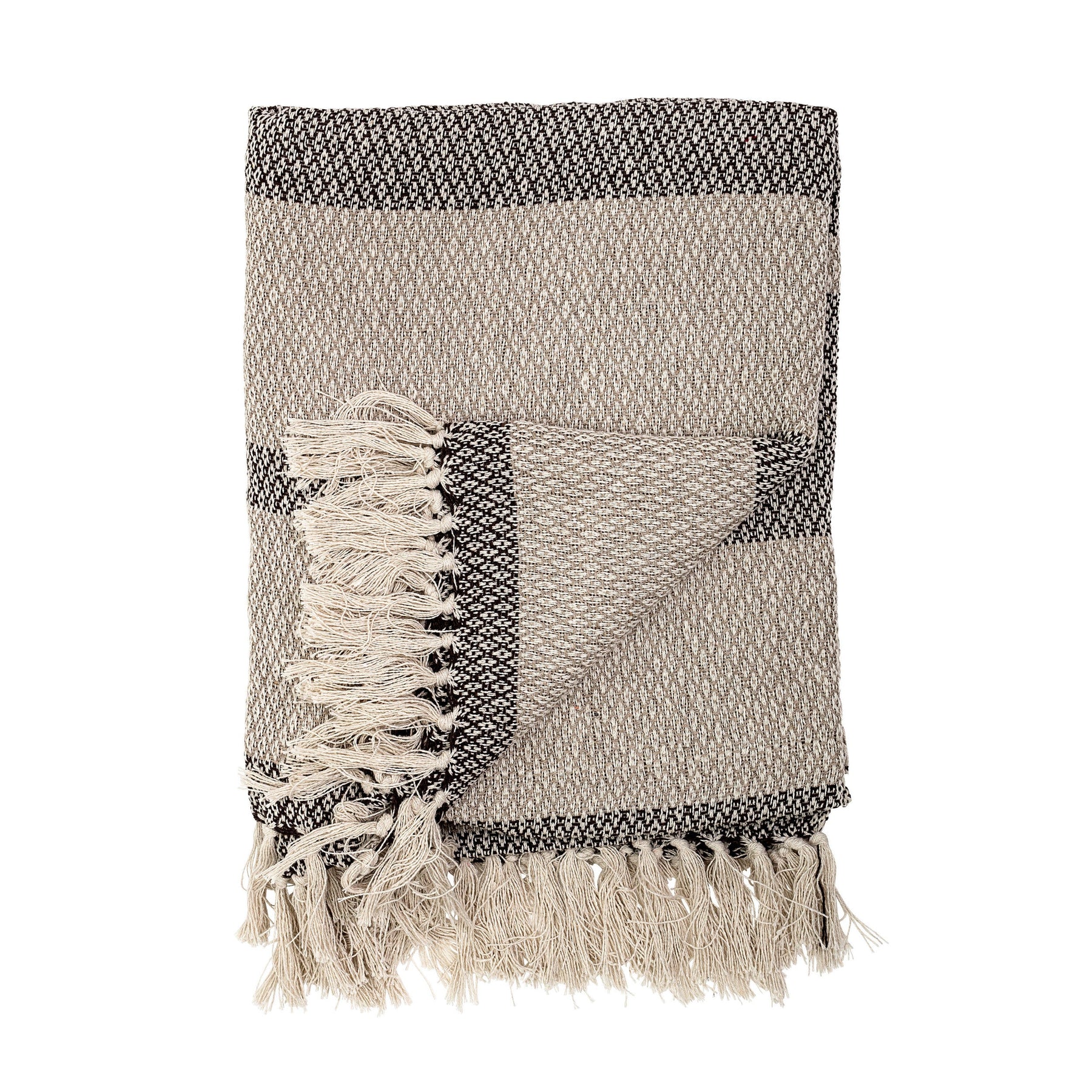 60"L x 50"W Recycled Cotton Blend Knit Throw w/ Fringe, Grey & Cream Color