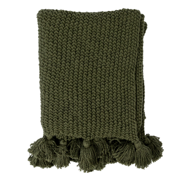 Olive Throw with Tassels