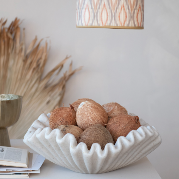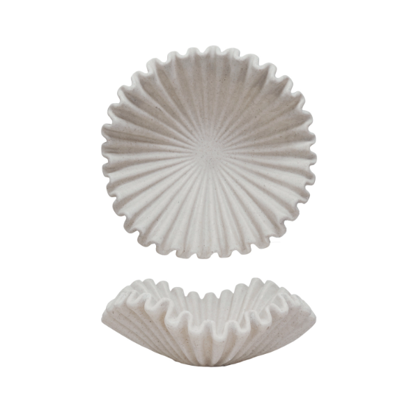 20"L x 20"W x 7"H Decorative Resin Ruffled Bowl, Stone Finish, Cream Color, Truck Ship