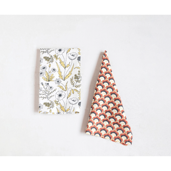 100% Cotton 28"L x 18"W Cotton Tea Towel w/ Floral Pattern, Multi Color, 2 Styles