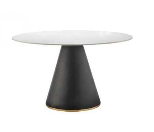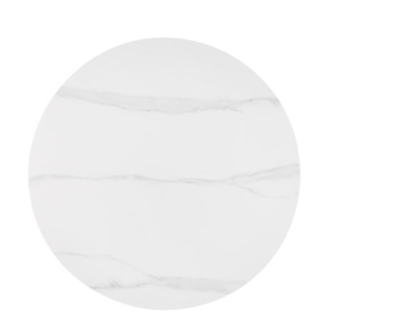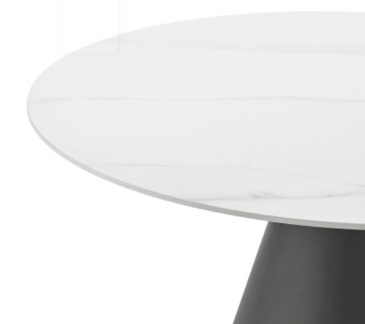The Geovanna Dining Table has a patterned marble top on a pedestal base. This 51" width table fits 4 chairs comfortably. The ceramic top is heat/water/scratch & stain resistant.