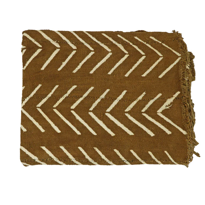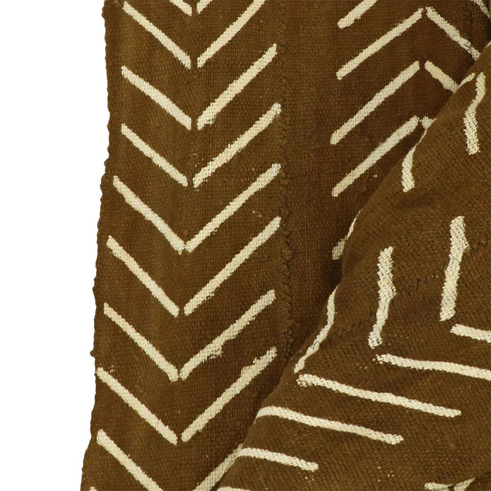 In Malian tradition, the "mud cloth" is known also as a bogolan. The name comes from the coloring method, taking handmade Malian fabric and using a rich clay to color the fabric. This Brown Mali Mud Cloth is versatile and modern with its rich brown coloring and thin white stripes.