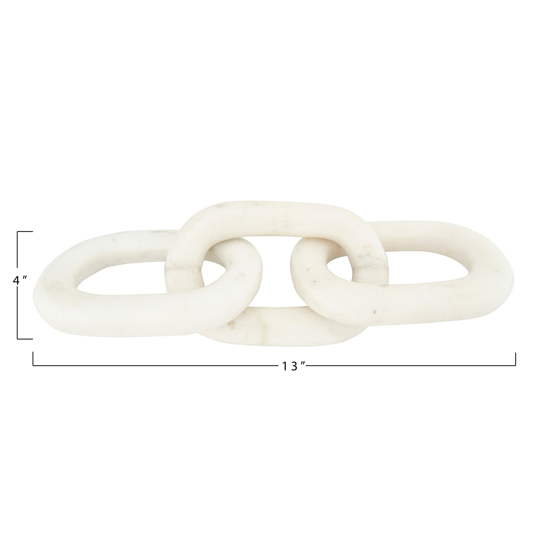 13"L x 4"W Marble Chain Decor w/ 3 Links, White