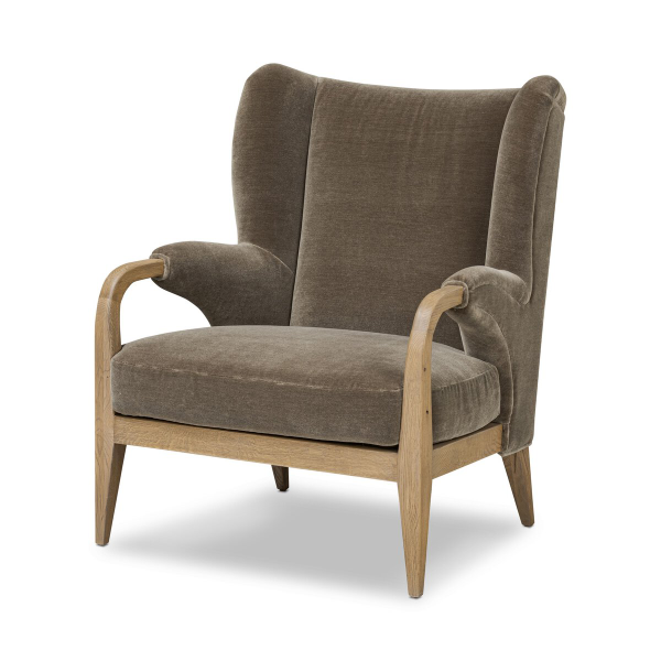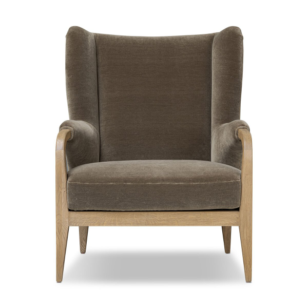 A new take on the classic wingback shape. The chair's simple shaping elevates subtle design elements throughout, including a thoughtfully constructed oak frame that appears to extend midway from upholstered arms before seamlessly meeting the piece's legs. A fixed back with contoured wings creates a cozy, sheltered feel, and a loose, reversible cushion with S-spring suspension creates a supportive sit. Faux mohair adds an elevated moment to this traditional frame