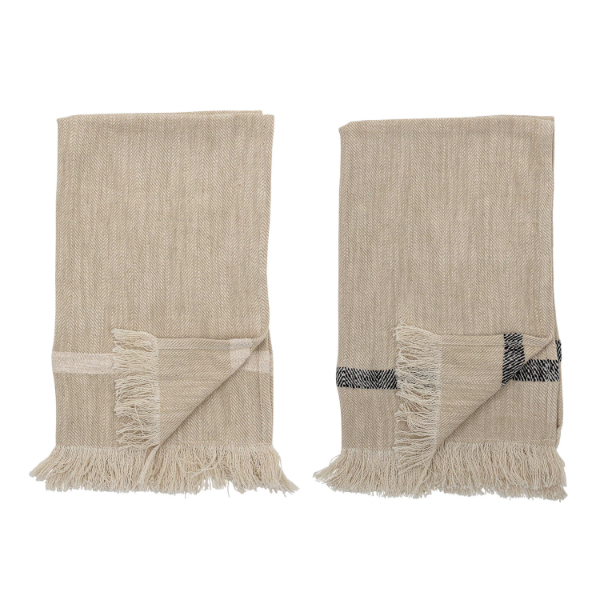28"L x 18"W Woven Cotton Striped Kitchen Towels w/ Fringe, 2 Colors