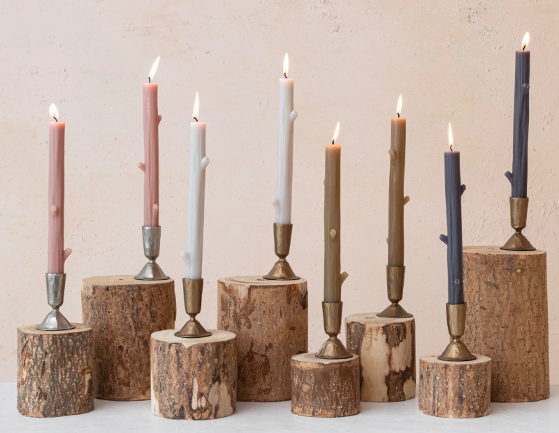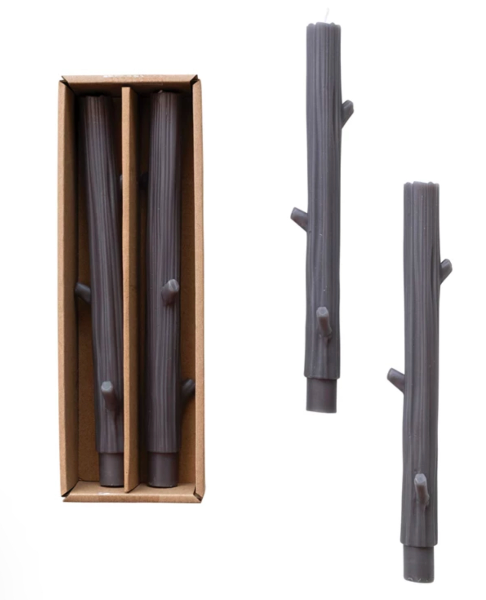 3-1/4"L x 1-3/4"W x 10-1/4"H Unscented Twig Shaped Taper Candles, Charcoal Color, Set of 2 (Approximate Burn Time 8 Hours)